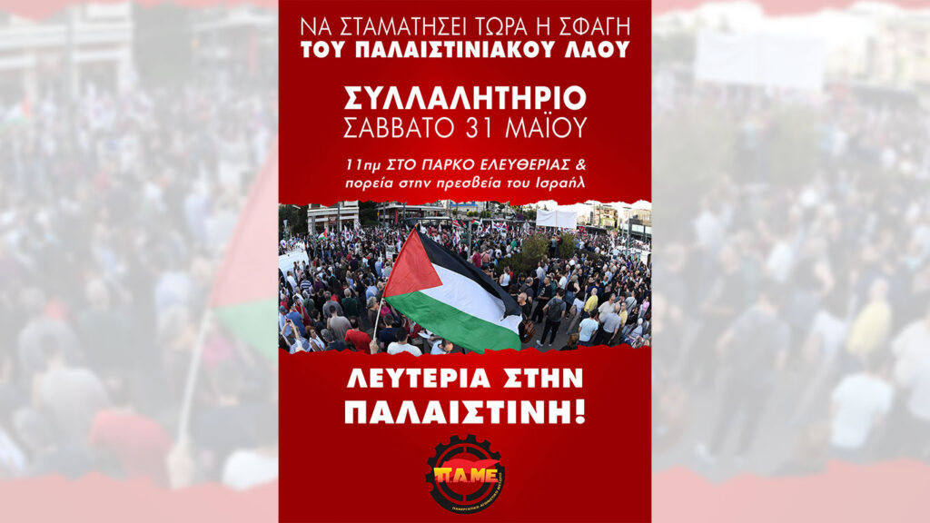ΚΑΜΙΑ ΣΤΗΡΙΞΗ ΣΤΟ ΚΡΑΤΟΣ ΔΟΛΟΦΟΝΟ ΤΟΥ ΙΣΡΑΗΛ Συναδέλφισες, συνάδελφοι, Καταγγέλλουμε το κράτος δολοφόνο του Ισραήλ που έπειτα από 588 ημέρες σφοδρών και πολύνεκρων βομβαρδισμών και πολεμικών επιχειρήσεων και αφού έχει σφαγιάσει πάνω από 61.000 νεκρούς και 119.000 τραυματίες, στην συντριπτική πλειοψηφία άμαχο πληθυσμό, κλιμακώνει την επίθεση στην Λωρίδα της Γάζας με νέα επιχείρηση με το […]