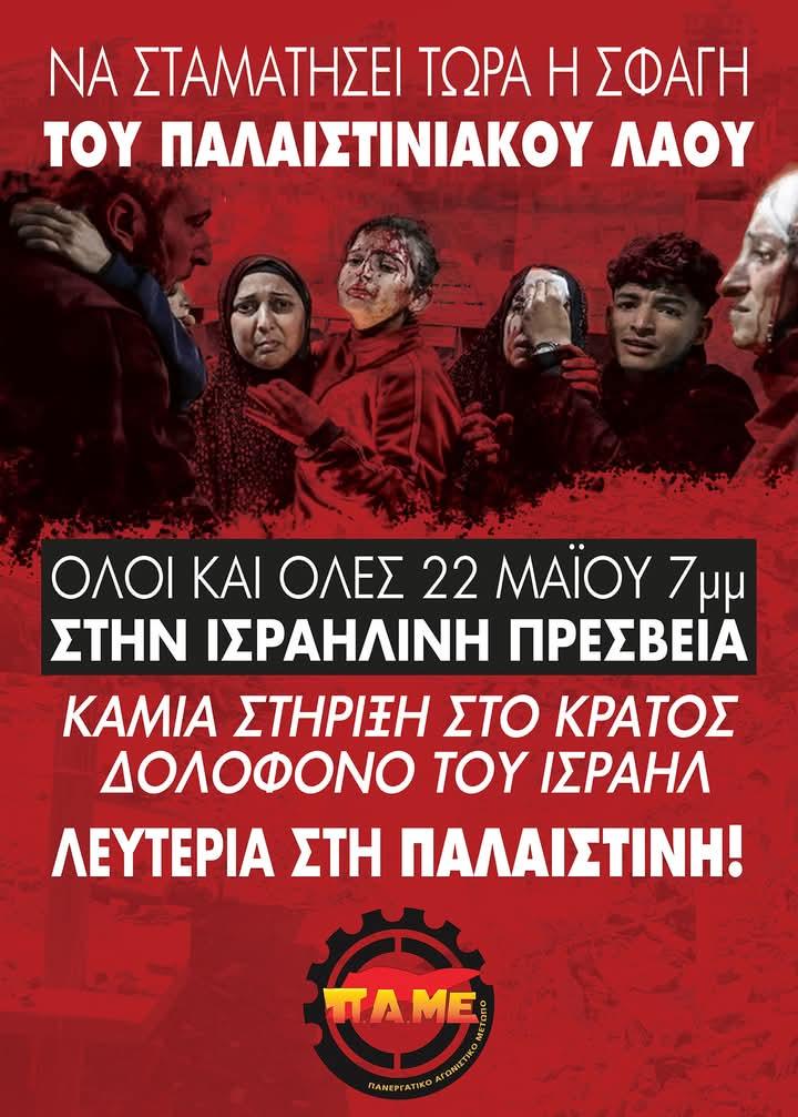 Ο λαός δεν γίνεται συνένοχος στο έγκλημα και η στάση του είναι σε πλήρη αντίθεση με την κατάπτυστη ελληνική κυβέρνηση που για τις «στρατηγικές συμμαχίες» της αστικής τάξης αρνείται να καταδικάσει τα ισραηλινά εγκλήματα. Δεκάδες χιλιάδες λαού συμμετείχαν στην πορεία προς την πρεσβεία του κράτους – κατακτητή και δολοφόνου Ισραήλ. Για τον όγκο της διαδήλωσης […]
